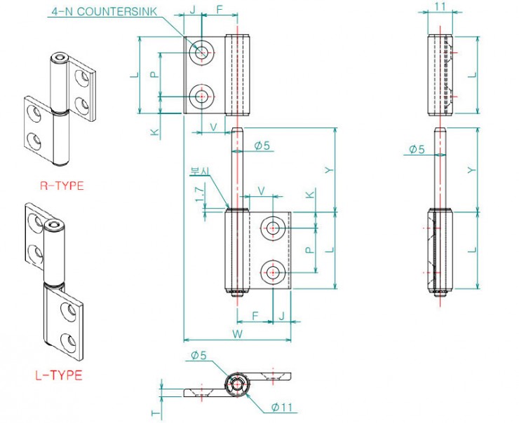 깃발힌지(FLAG HINGE) HHPFR / HHPFL