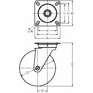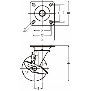 419S-RB200 스토퍼붙이트랙형 RB 200 철판휠고무권차륜 롤러베어링들이
