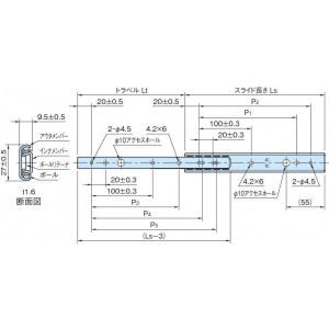 | 형식 | 슬라이드길이 (±0.8) |