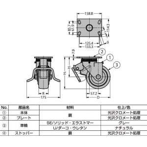 | SUG-8-806B-YU | 브레이크있음 | 다코 · 우레탄 | 152.4 | 130.2 |